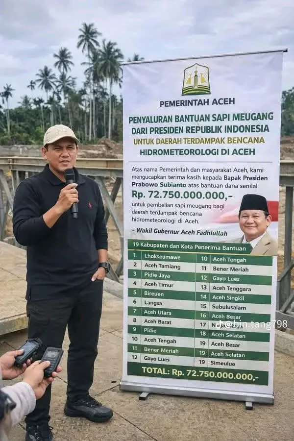 Lingkarpost.com | Banda Aceh — Presiden Republik Indonesia H Prabowo Subianto menyalurkan bantuan kemasyarakat untuk pembelian sapi bagi warga desa-desa terdampak bencana di sejumlah kabupaten/kota di Aceh. Berdasarkan data penyaluran diperoleh lingkarpost.com
