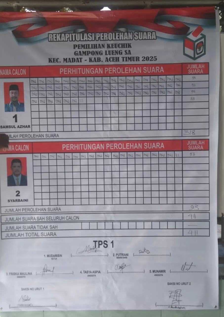 “Dari 878 suara sah, Samsul Azhar peroleh suara terbanyak dengan total 556 suara dari 2 TPS, sementara Syarbaini hanya peroleh 275 suara,” kata Abubakar saat dihubungi Lingkarpost.co