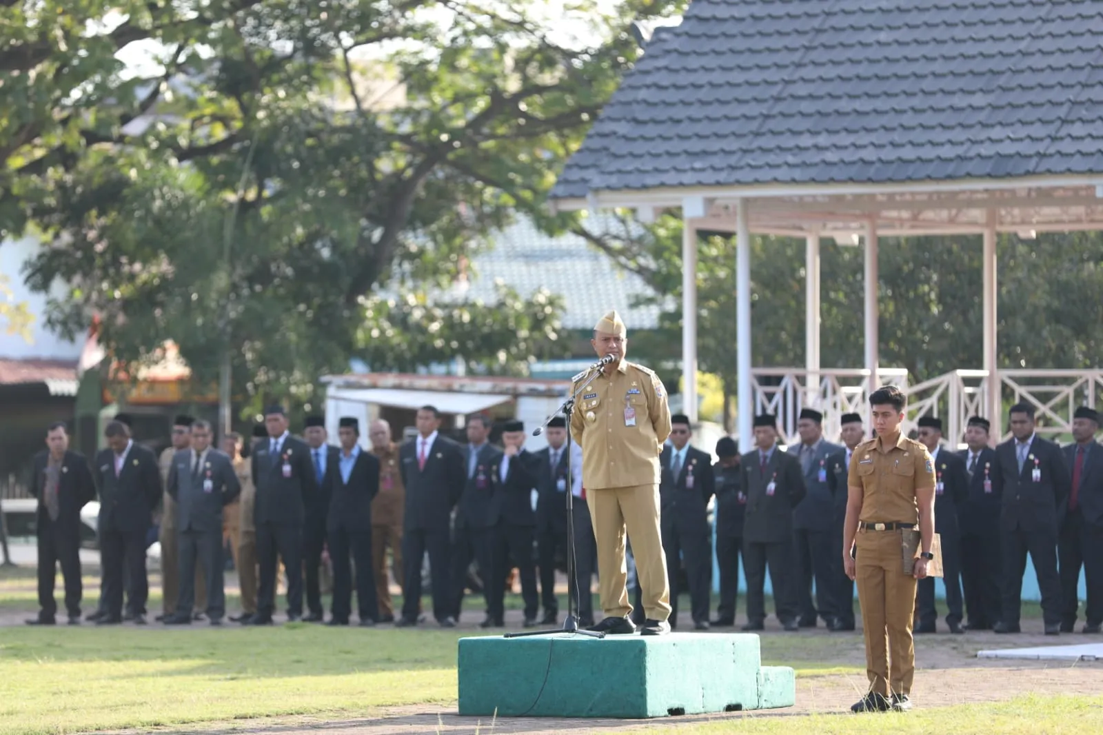 Dalam sambutannya, Pj. Bupati Murtala menyampaikan rasa hormat dan terima kasih kepada seluruh tamu undangan, tokoh masyarakat, perwakilan adat, dan warga Aceh Jaya yang hadir.